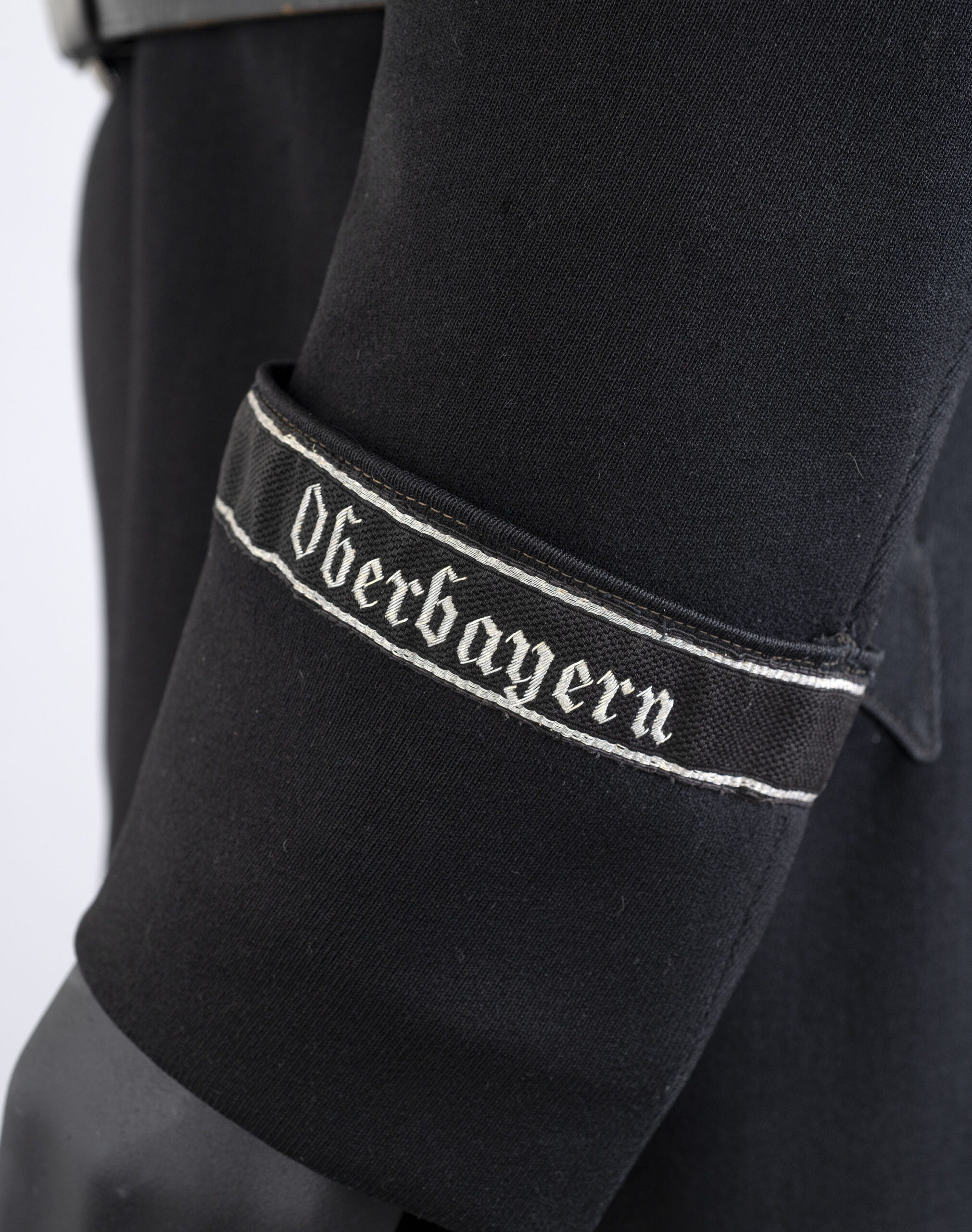 The SS-TV was divided into multiple regiments (standarte), each tied to the concentration camp they initially oversaw. This uniform belongs to the prestigious 1st SS-TV regiment “Oberbayern” (1. SS-Totenkopfstandarte “Oberbayern”), the original nucleus from which the entire SS-Totenkopfverbände was formed. The ‘O’ for “Oberbayern” adorning the tunic’s right shoulder board serves as the wearer’s regimental identification.